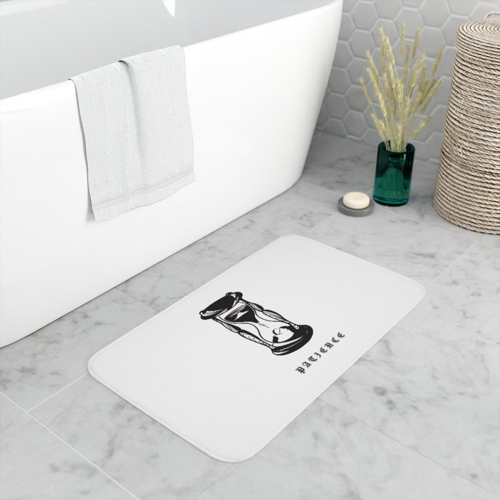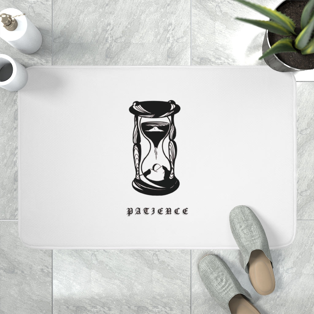 Add a splash of clarity to any bathroom with this PATIENCE bath mat. Featuring a cozy memory foam layer and a soft microfiber surface for ultimate comfort, this mat is a safe addition to any home thanks to its anti-skid bottom.
