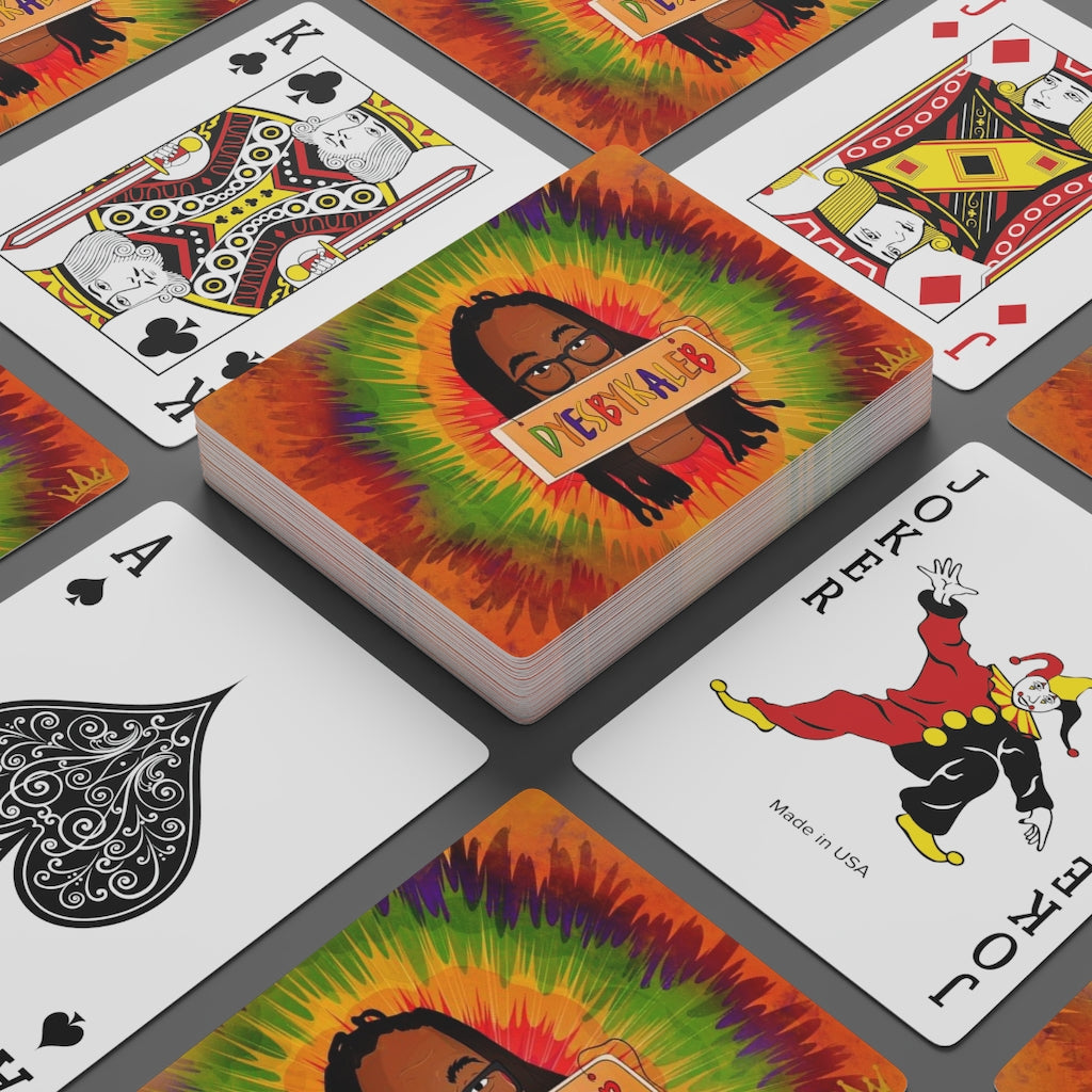 Poker nights are a great deal of fun, but a deck of DyesbyKaleb poker cards brings so much more entertainment to the table. Our poker cards feature a smooth card stock that’s perfect for dealing & shuffling. Card Dimensions: 2.5" x 3.5"; Includes 52x playing cards with 2x Joker cards.