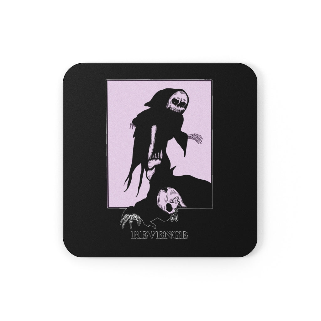 Crafted with genuine cork bottoms, these REVENGE coasters are built to last. They’re all topped with polyester-coated hardboard. Made in America, these items come in a 3.75″ X 3.75 square shaping. Sold individually!