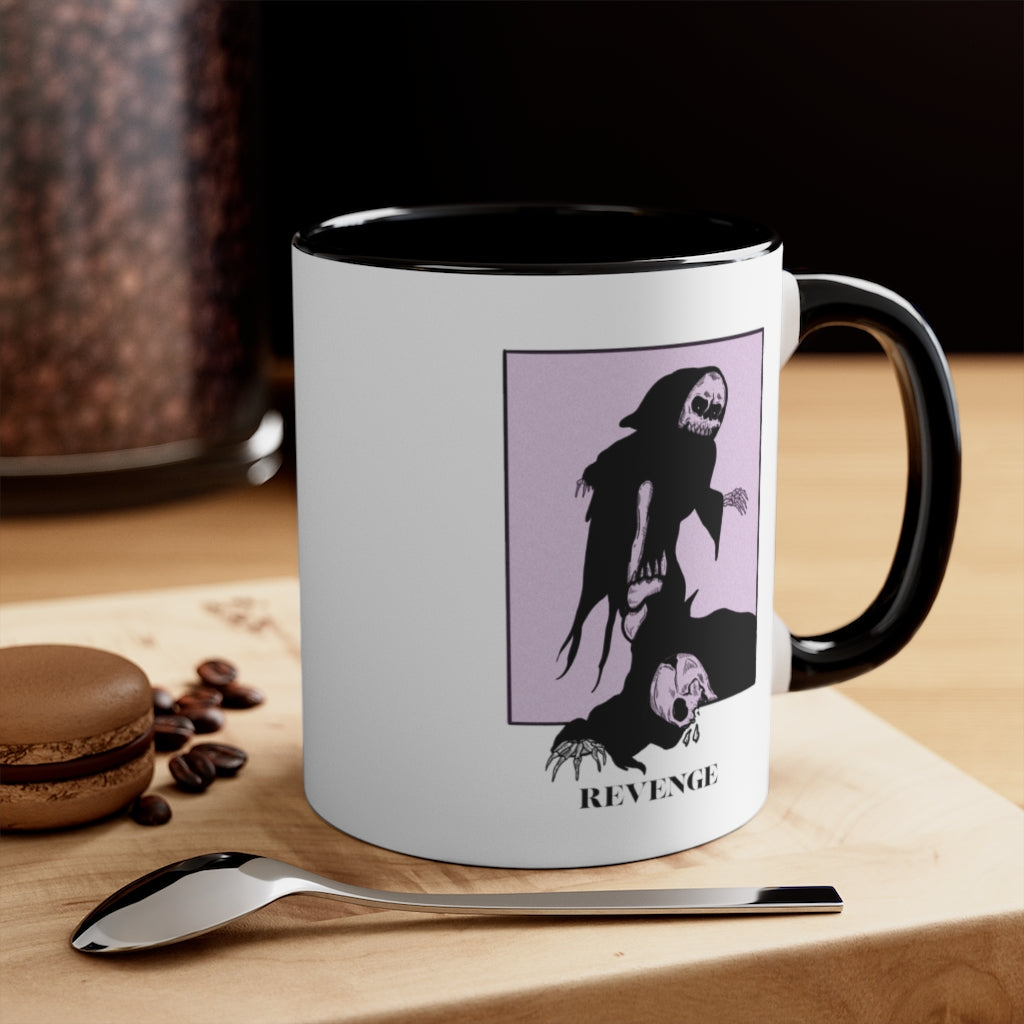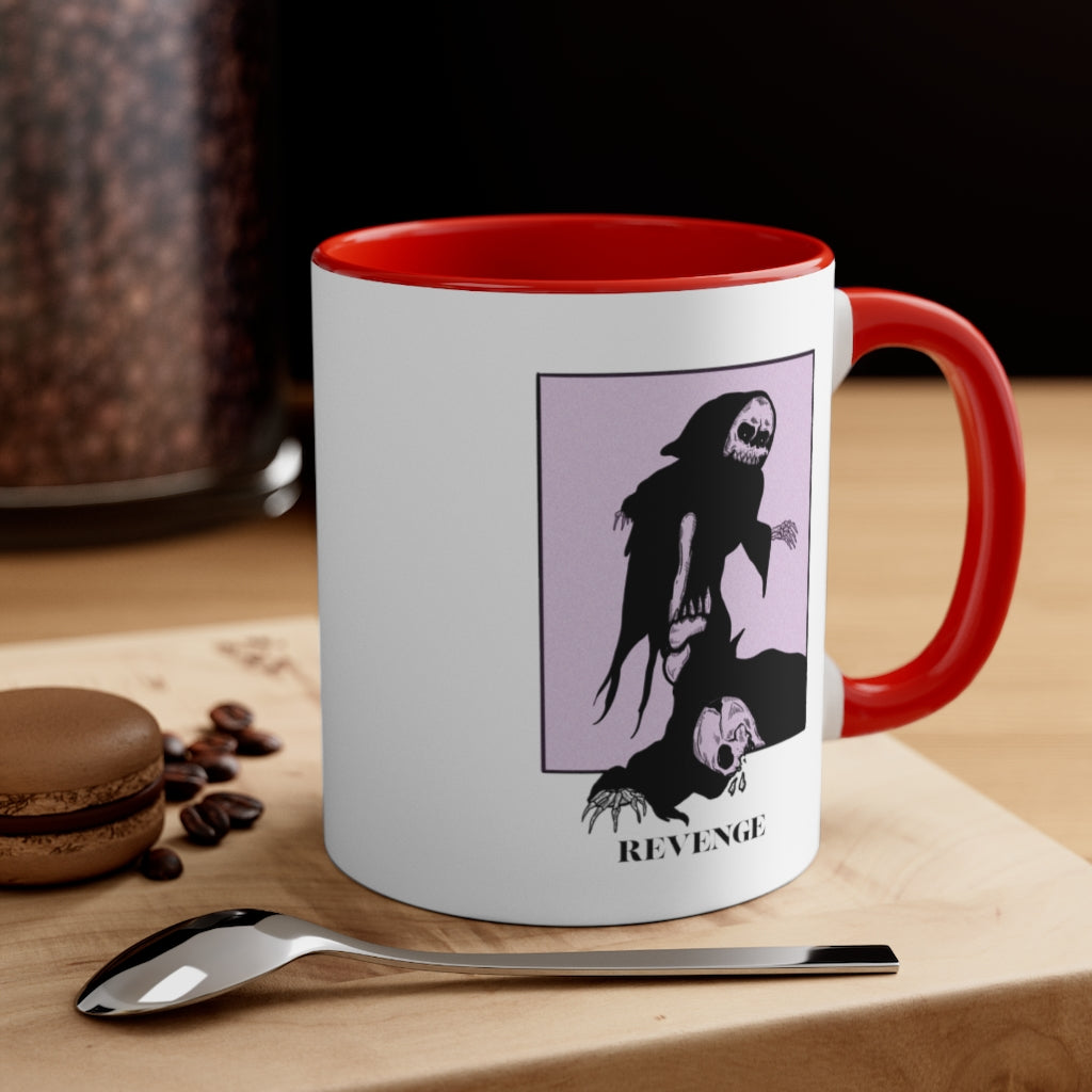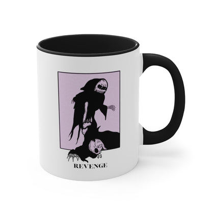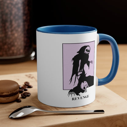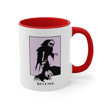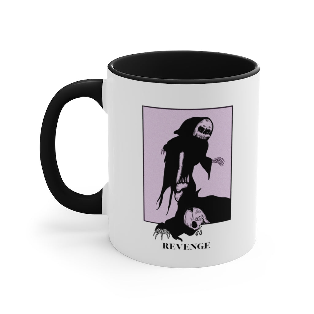 Add some color to your routine with this two-tone, custom accent coffee mug. This 11oz mug features an accented C-Handle that is comfortable to use, as well as an accented interior to add more contrast and character. With your design on this mug, you get an instant winner of a product.