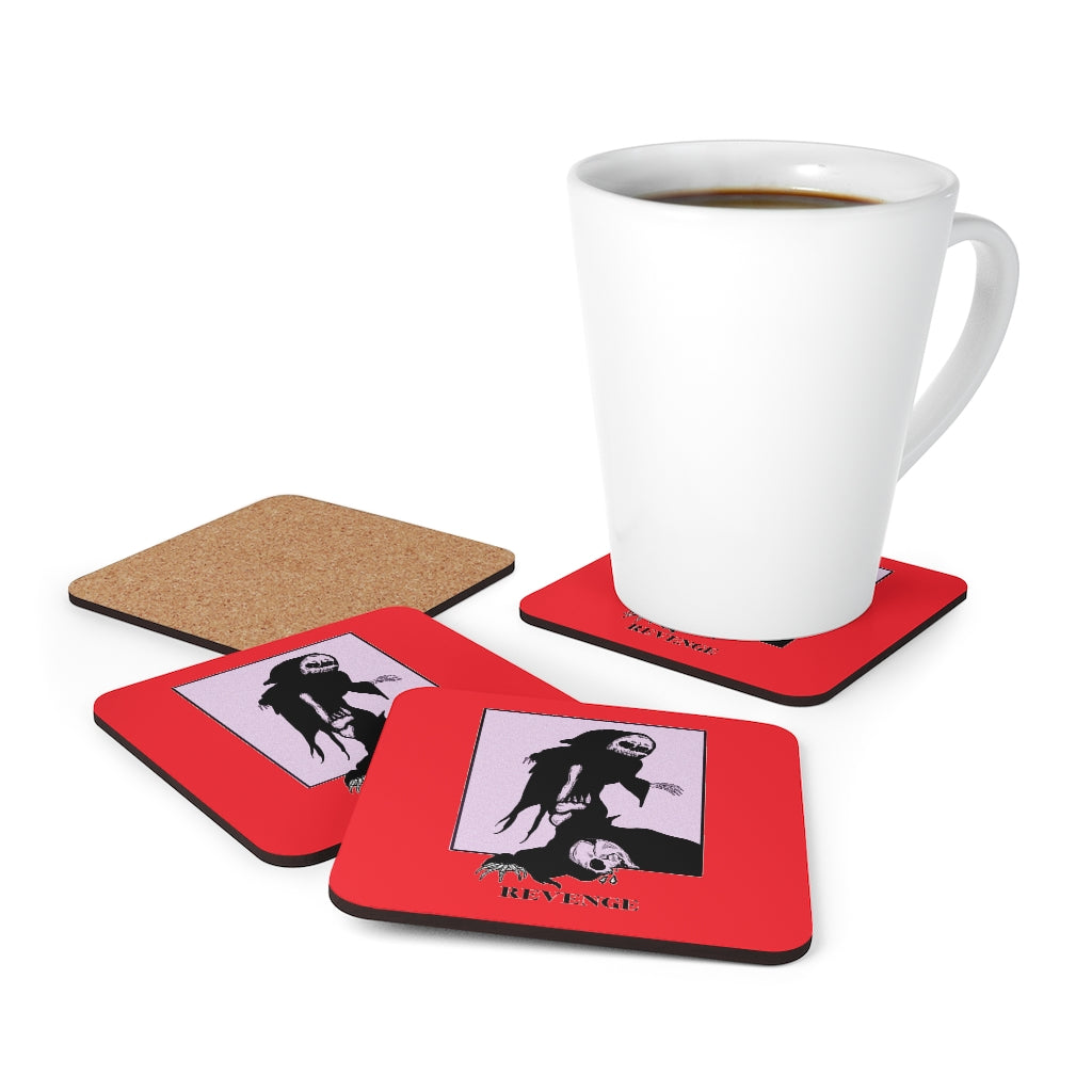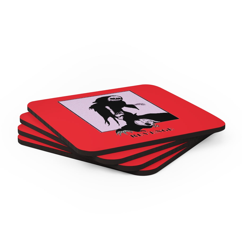 Crafted with genuine cork bottoms, these REVENGE coasters are built to last. They’re all topped with polyester-coated hardboard. Made in America, these items come in a 3.75″ X 3.75 square shaping. Sold individually!